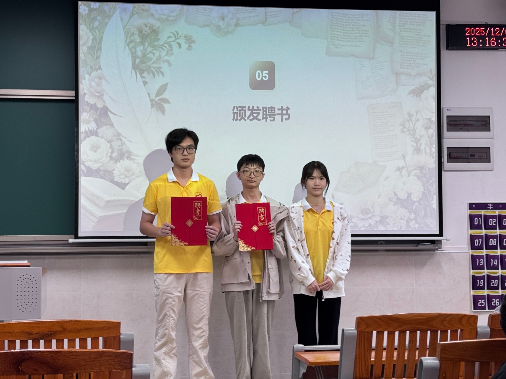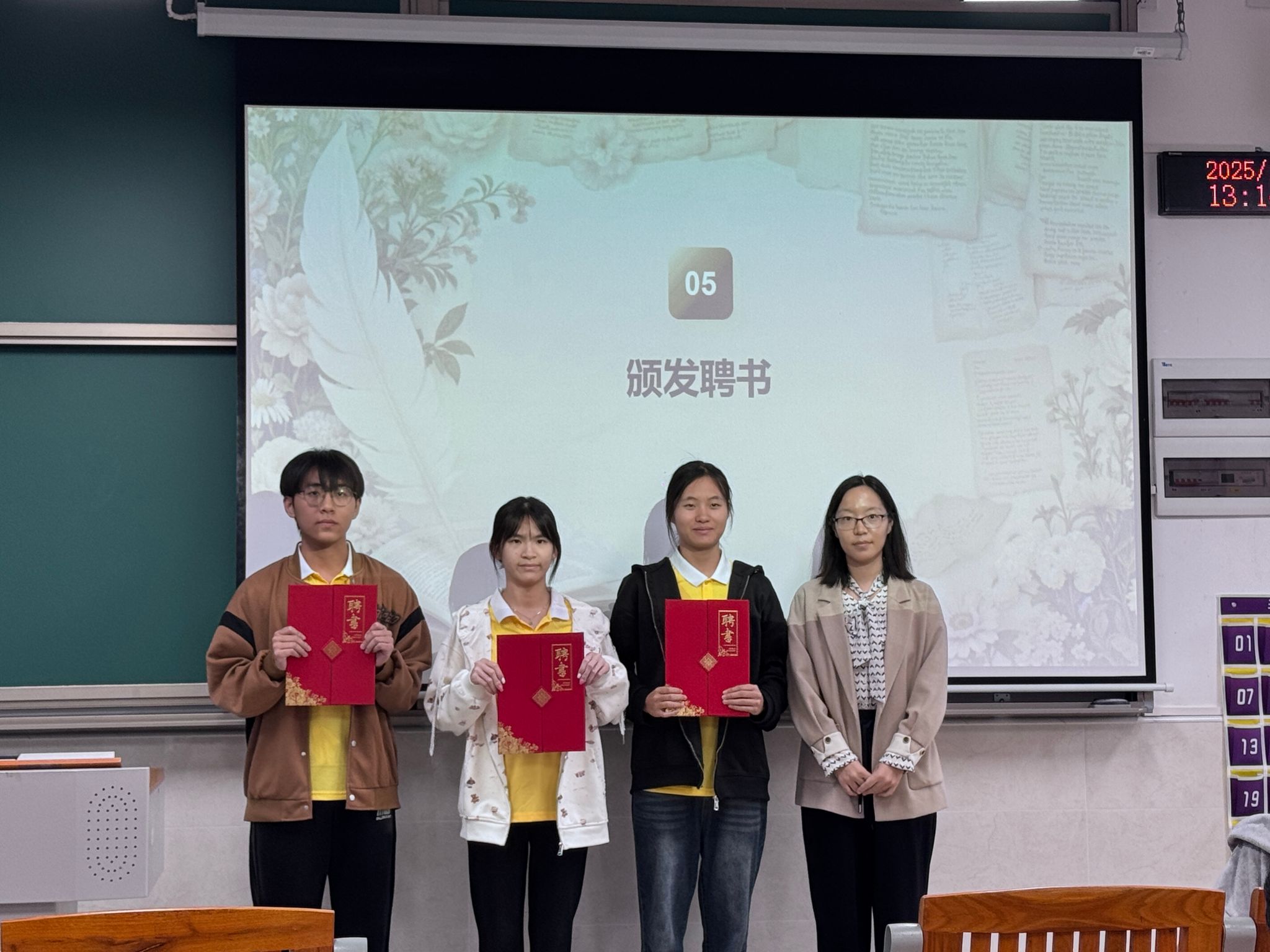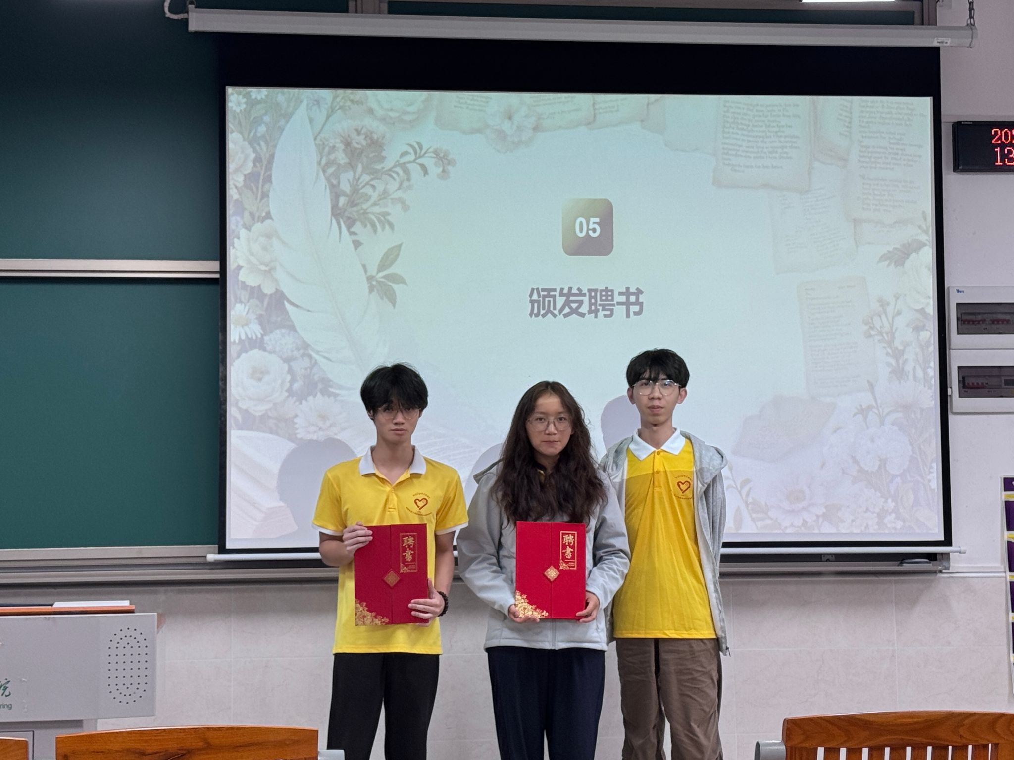 会上,商老师向会长、部长及新干事颁发了聘书。
