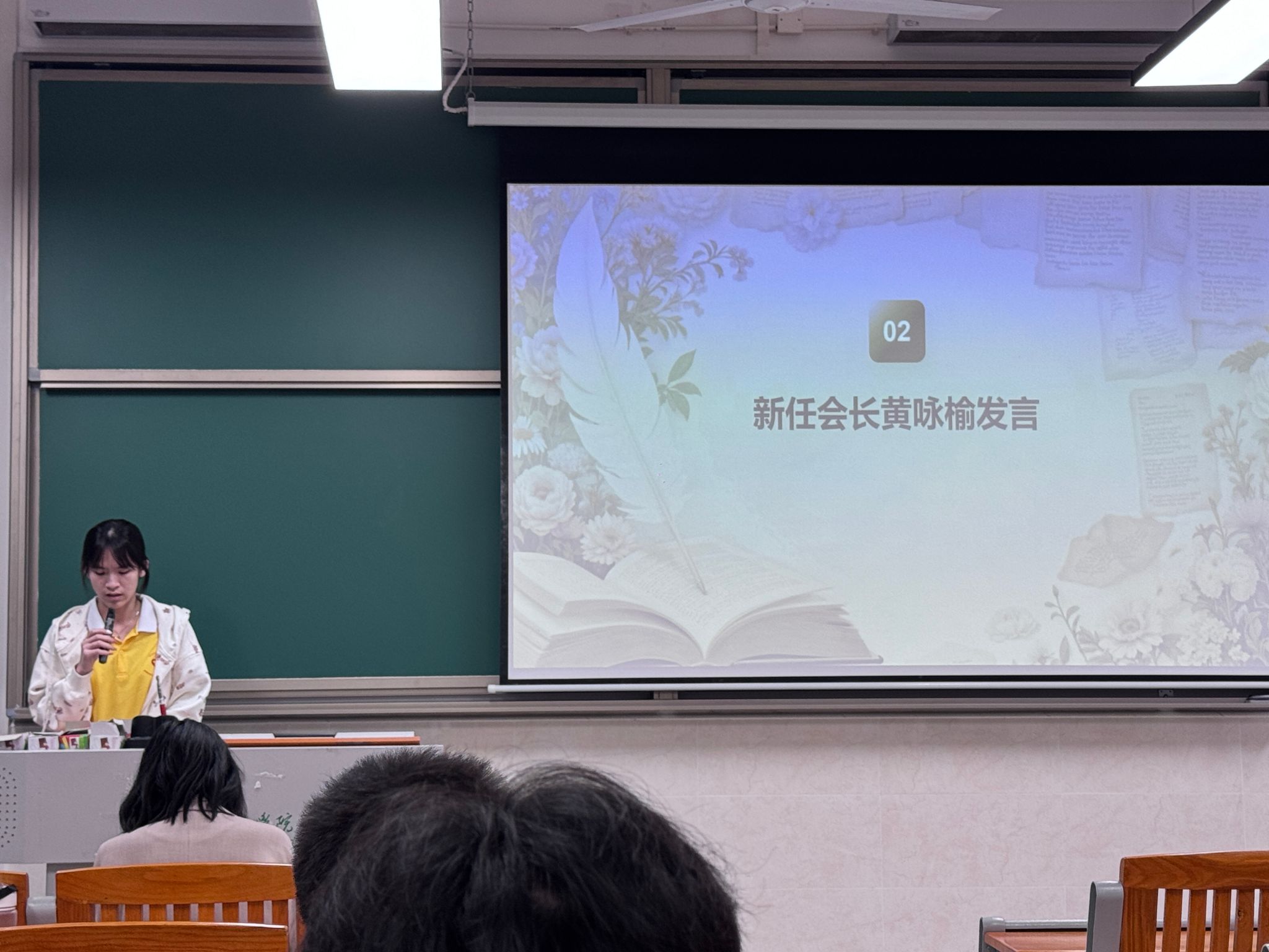 现任会长黄咏瑜做了表态发言,本学期,15名新同学加入自动化学院青协,为组织注入了新鲜活力。她期望留任干部能够始终保持积极的工作态度,全体成员都能乐于奉献、勇于担当,携手完成新一年的志愿活动,同时收获珍贵的友谊!