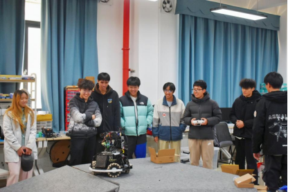 首先,陈圣铎老师带领学生参学院604、603、601实验室,604实验室展示了专门用于海洋牧场的病害检测的水下机器人以及具备快速全向移动能力,即便在复杂地形中也能保持灵动的运行状态的全向轮底盘机器人。603实验室的大型无人机采用折叠式结构,可适应狭小空间作业需求,同时凭借模块化设计,能根据具体场景灵活更换适配云台,自动巡检机器人通过雷达探测环境,并将采集的数据传输至上位机,由上位机完成路径规划,以此实现自主移动巡检,同学们对机器人的运行及控制模式表现出了浓厚的兴趣。